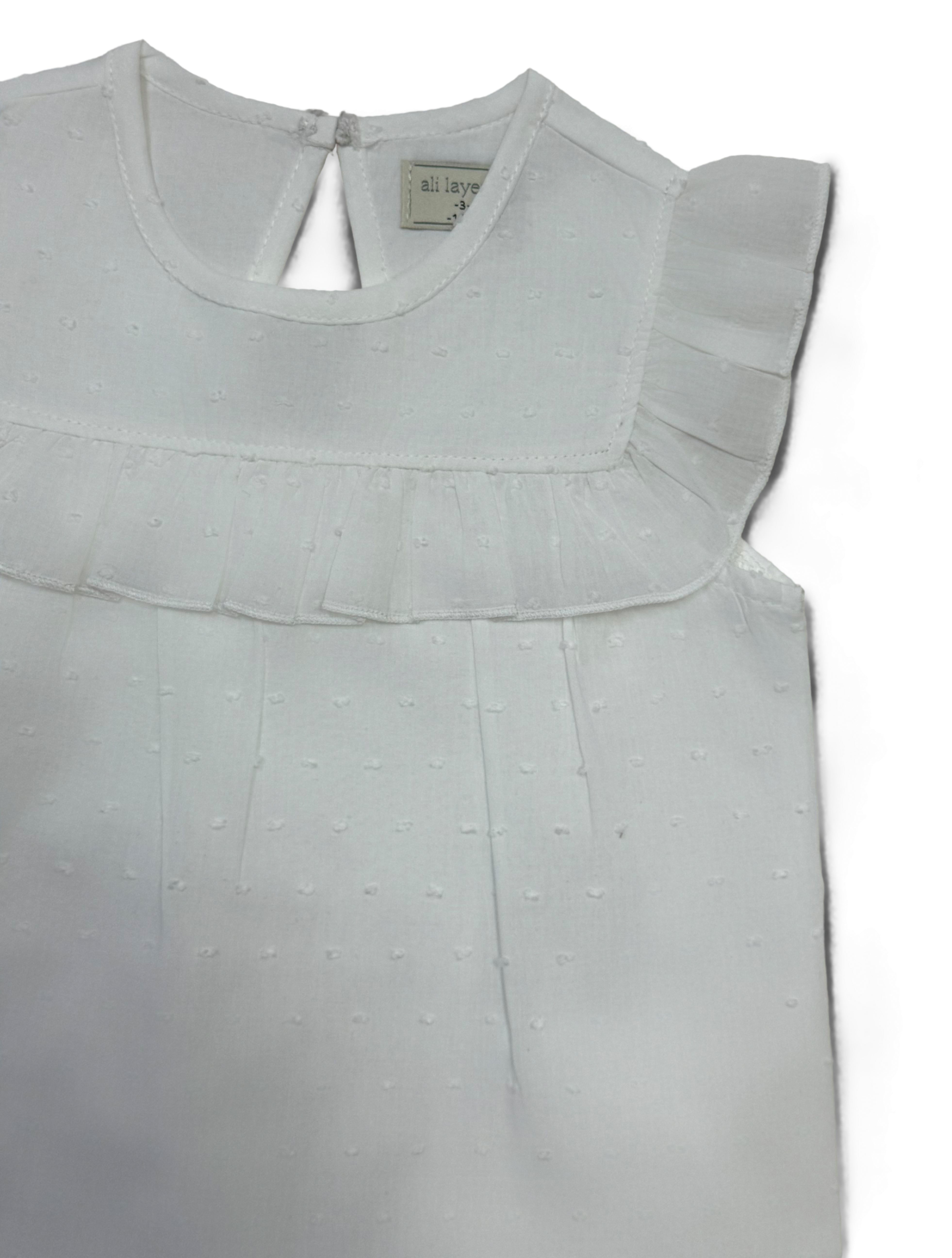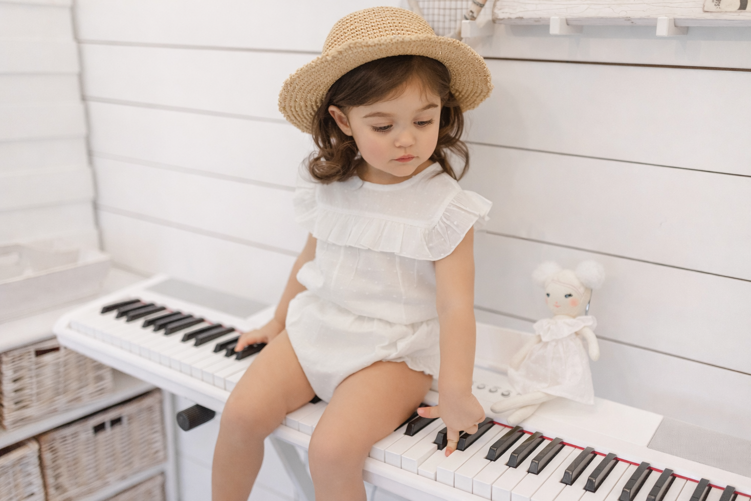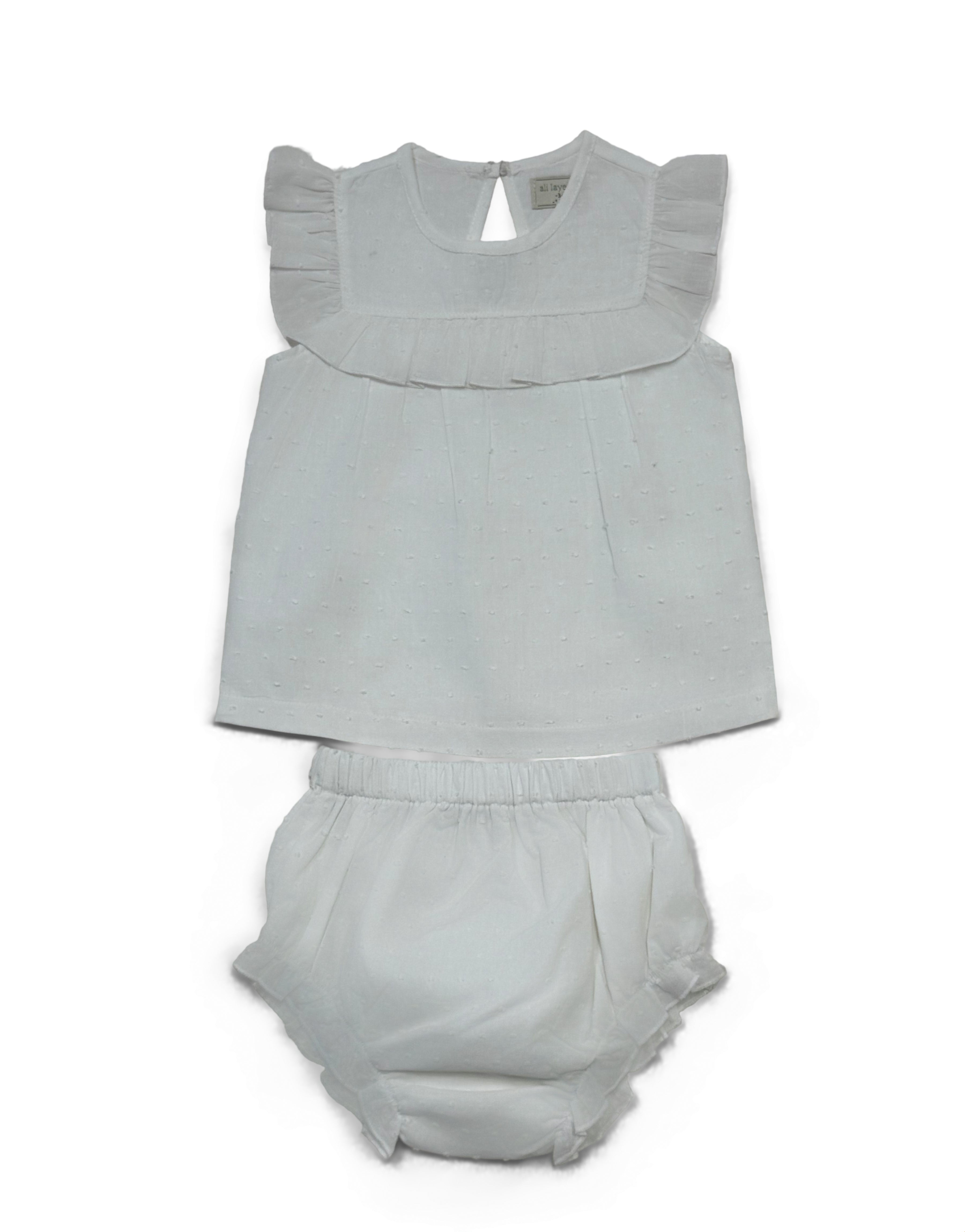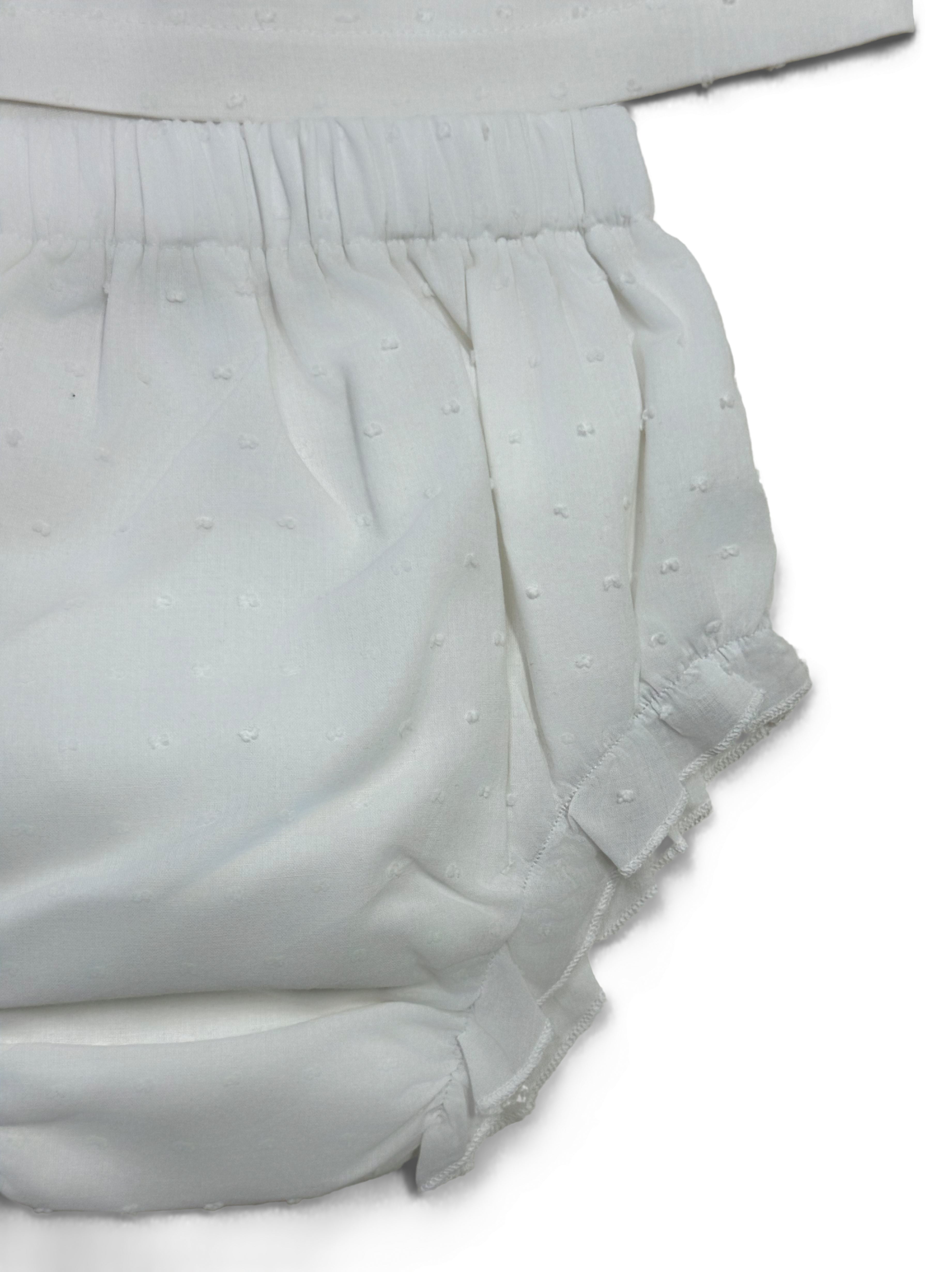 Baby two-piece set in soft white cotton, featuring a sleeveless top and shorts. Comfortable and airy for better wear.